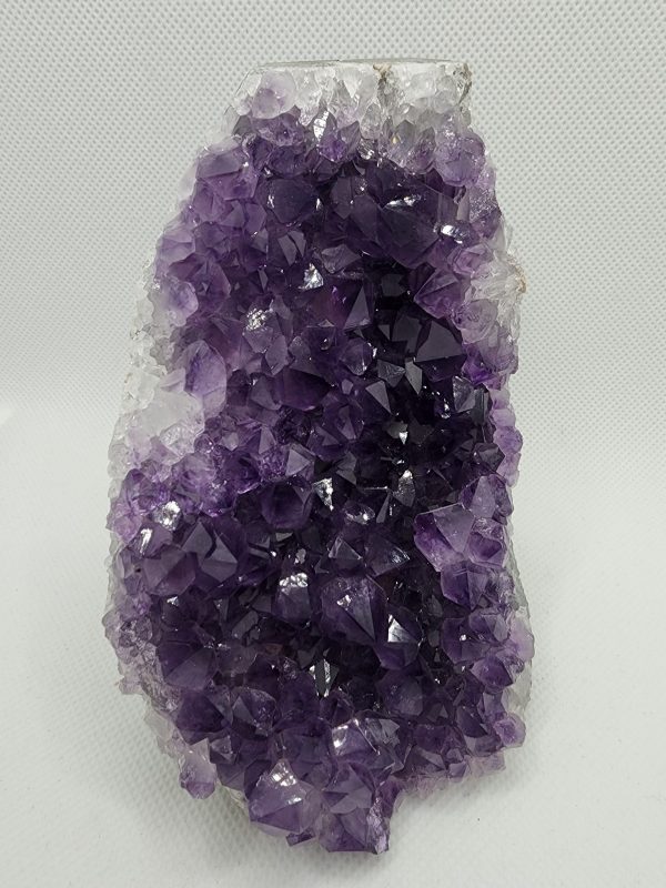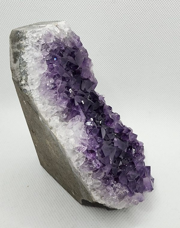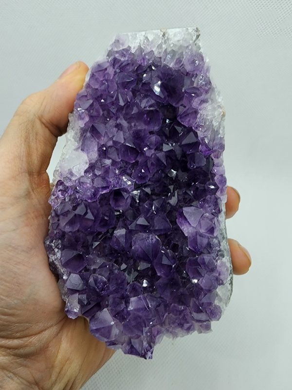 Originating from the rich mineral deposits of Uruguay, each crystal within this cluster reflects the unique geological history of its surroundings. The deep purple hues of the amethyst evoke a sense of luxury and elegance, while their sparkling clarity adds a touch of magic to the piece.