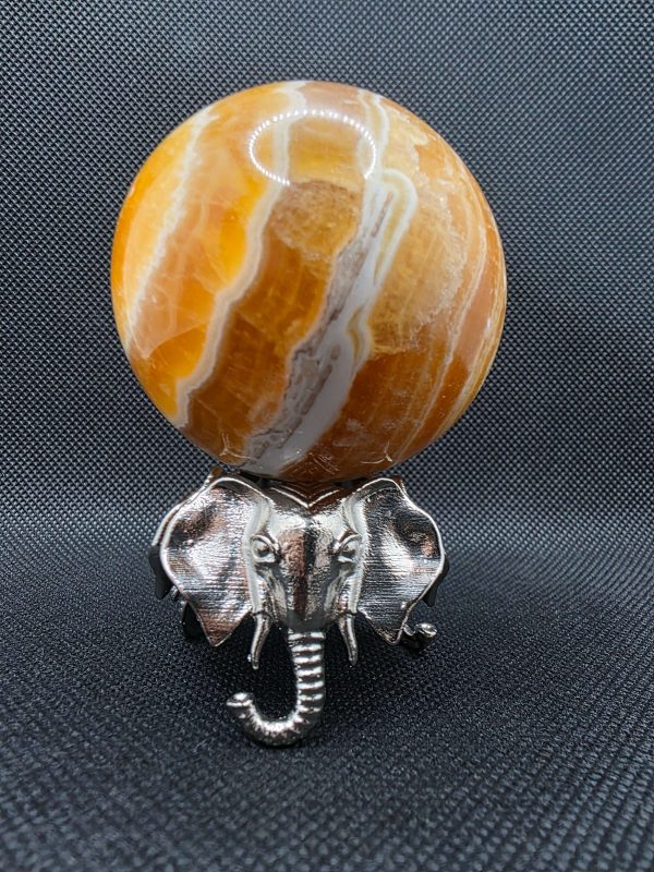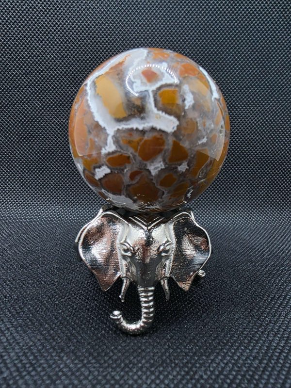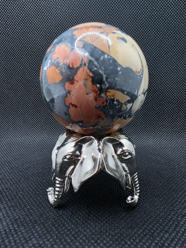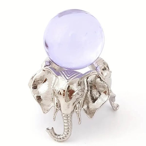 Display your favorite gemstone or crystal sphere in style with this Metal Elephant Sphere Holder Stand Metal Base. Crafted entirely from durable metal, this elegant stand features three intricately detailed elephants positioned evenly around the base for perfect balance and stability. The round top securely holds your sphere while keeping it fully visible from every angle.