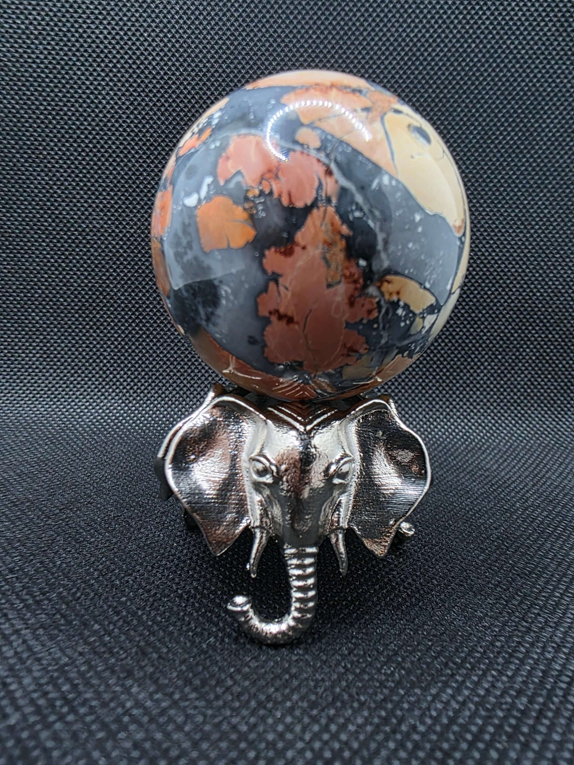 Display your favorite gemstone or crystal sphere in style with this Metal Elephant Sphere Holder Stand Metal Base. Crafted entirely from durable metal, this elegant stand features three intricately detailed elephants positioned evenly around the base for perfect balance and stability. The round top securely holds your sphere while keeping it fully visible from every angle.