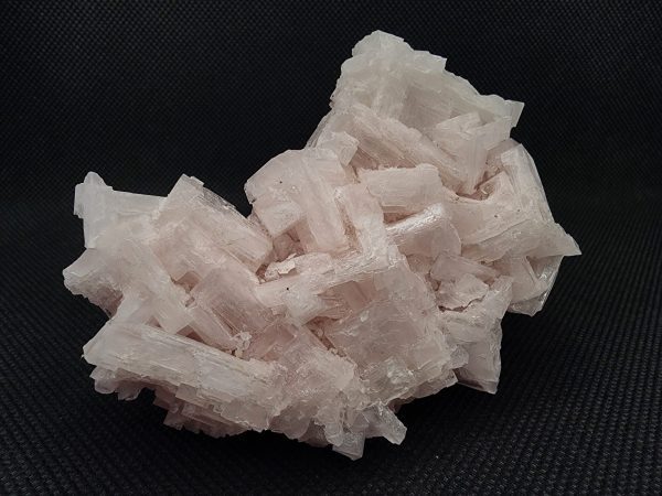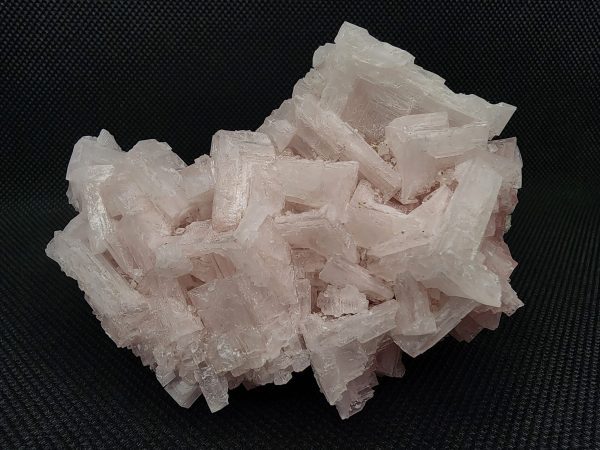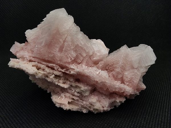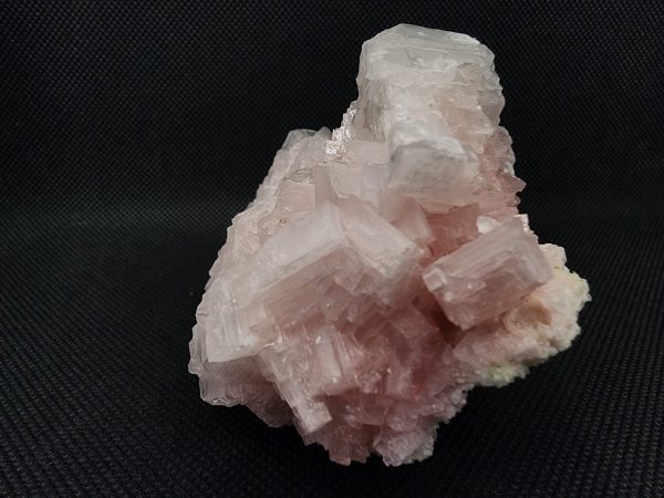 Pink Halite is a rare and beautiful form of salt crystal, with its color resulting from the presence of trace minerals such as potassium and iron. The striking pink coloration and well-defined cubic crystals make this specimen a standout piece in any mineral collection. The crystals’ sharp edges and translucent quality add to the visual appeal, creating a captivating play of light and shadow.