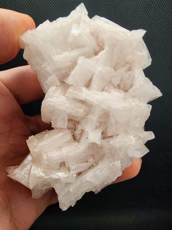 Introducing the stunning Pink Halite from Searles Lake, San Bernardino, CA, a truly remarkable specimen known for its vibrant pink hue and unique crystalline structure. This piece, measuring 4″ x 2 3/4″ x 2″ and weighing 164.4g, is a natural marvel formed through the evaporation of mineral-rich waters in the arid environment of Searles Lake.